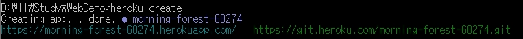 heroku create 원하는이름이 이름은 이름.herokuapp.com 의 도메인이 되면서